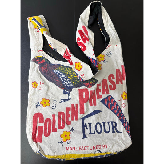 Golden pheasant Flour Sack Purse Bag Cotton Tote Vintage Look Feed Sack Cross Body