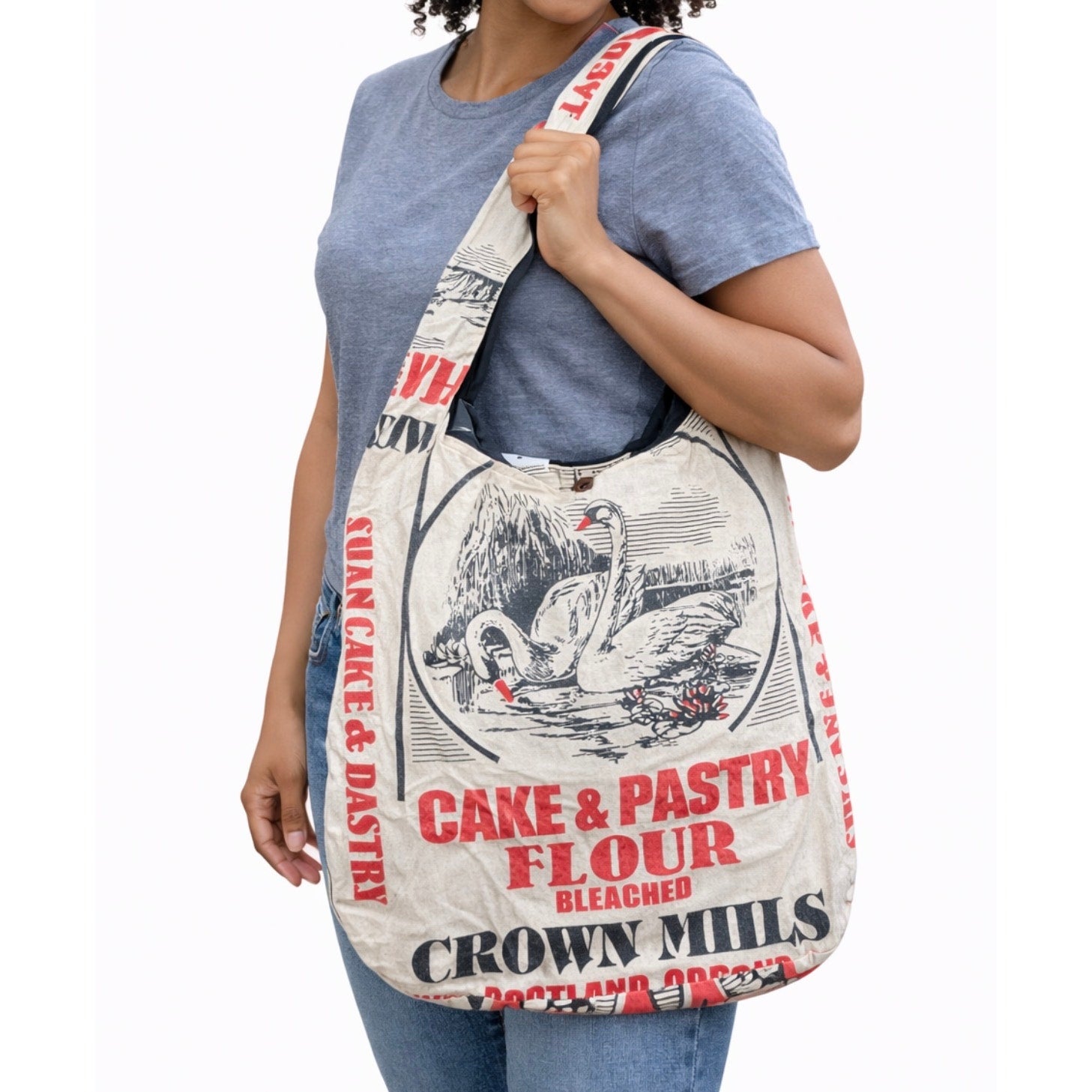 Upcycled flour sack tote bag